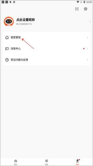 1、打开全橙智能App,进入“我的”页面,并选择“家庭管理”。